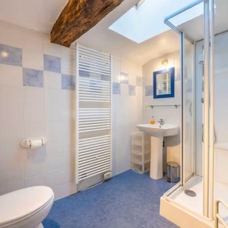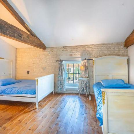 There are 2 bathrooms, 1 double room, one twin room and a large treble room with traditional french sleigh beds.